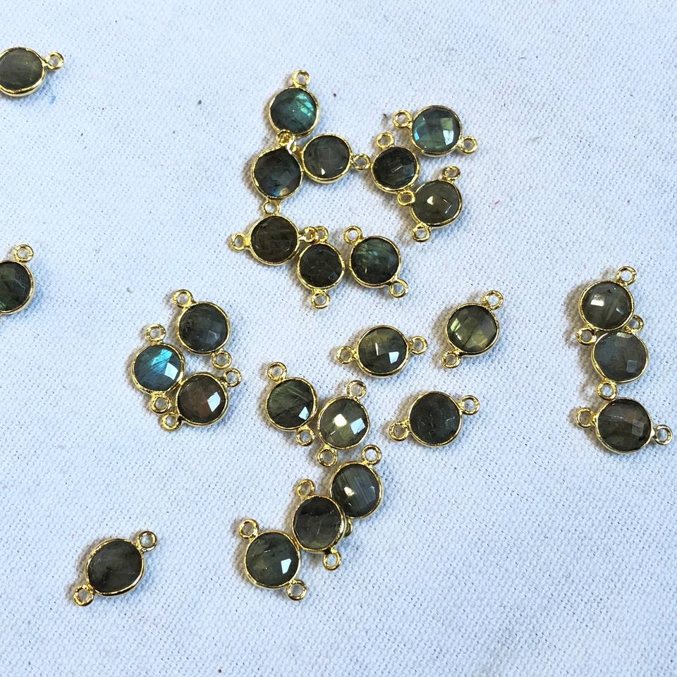 Product Name:Labradorite Gemstone Round Gold Bezel Connector