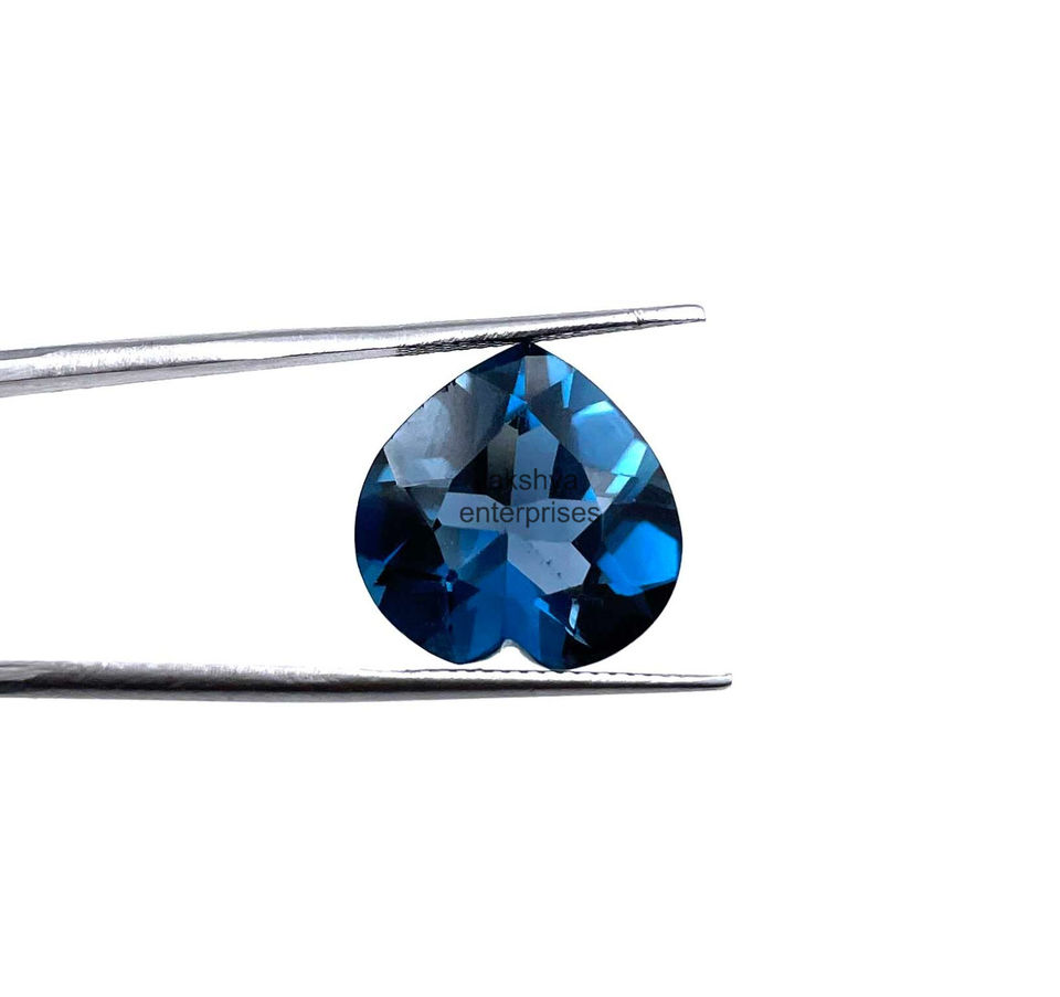 ลูกปัดพลอยตัดรูปหัวใจแกะสลักบุษราคัมลอนดอนสีฟ้าขนาด12มม. สำหรับทำเครื่องประดับหินบุษราคัมธรรมชาติโดยผู้ค้าส่งชาวอินเดียจำนวนมาก