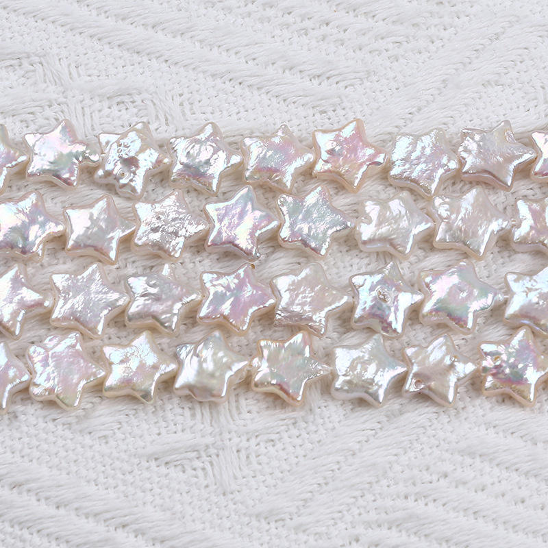 ไข่มุกน้ำจืดสีเงินเทาธรรมชาติขนาด 12 มม. ร้อยเป็นสาย ทรงบาร็อค รูปผีเสื้อ ประกายสว่างสดใส 40 ซม. ไข่มุกทรงไม่สม่ำเสมอ แบบเปลือย
