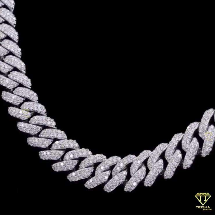 12มม. โซ่คล้องคิวบาปรับแต่งได้โซ่สร้อยคอคิวบาเงิน925สเตอร์ลิงกับเพชรโมอิสซาไนต์เครื่องประดับฮิปฮอป