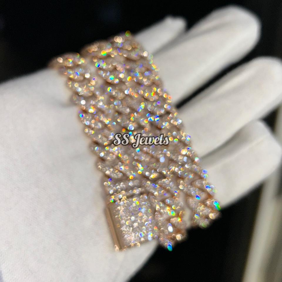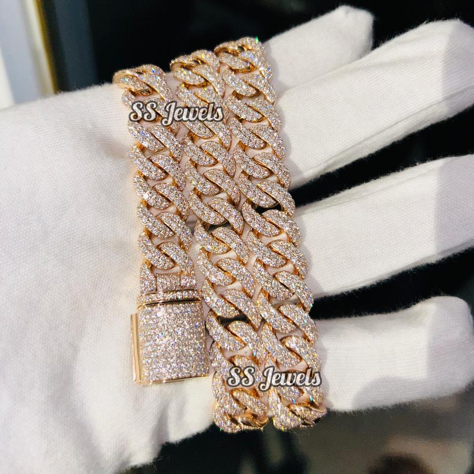 สร้อยคอเพชรโมอิส VVS1แท้12มม. ชุบโรเดียมเงิน925ชุบโรเดียมแบบคิวบาสร้อยฮิปฮอป