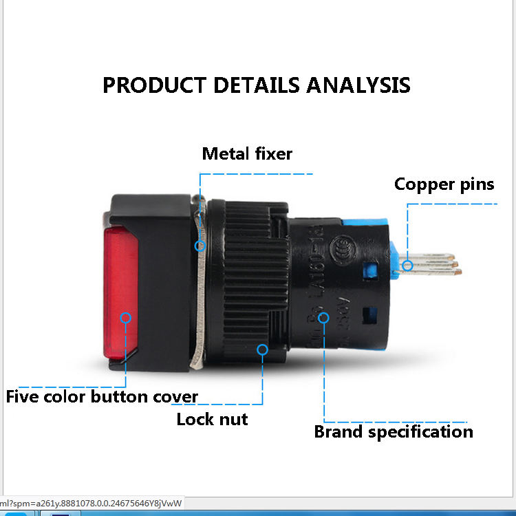 สวิตช์ปุ่มกดหยุดฉุกเฉินหัวเห็ดสีแดงขนาด 12 มม. สวิตช์ปุ่มกดล็อคตัวเองพลาสติกสีดำ