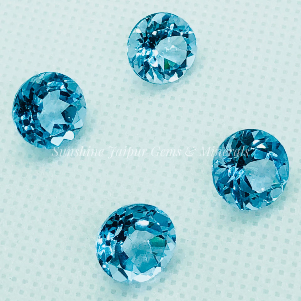 พลอยพลอยพลอยสีฟ้าท้องฟ้าธรรมชาติเจียระไนอย่างงดงาม12มม. ได้รับการรับรองจากกะรัต