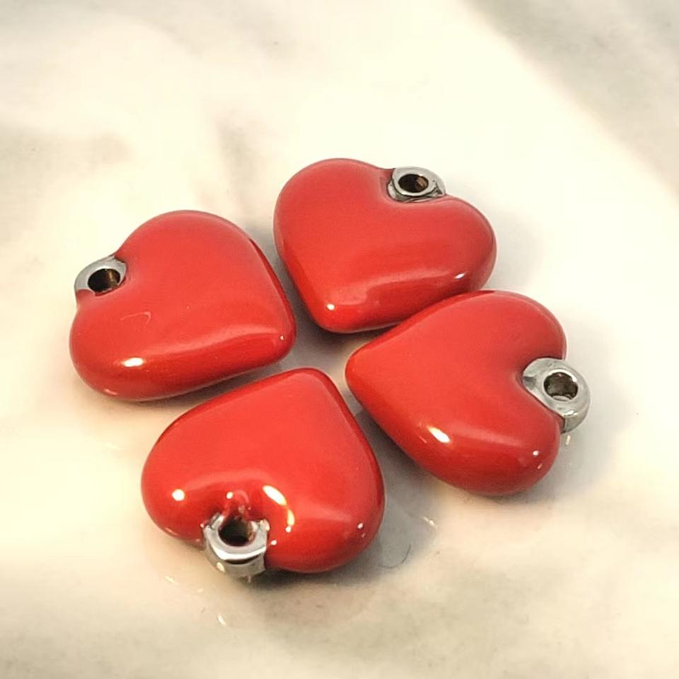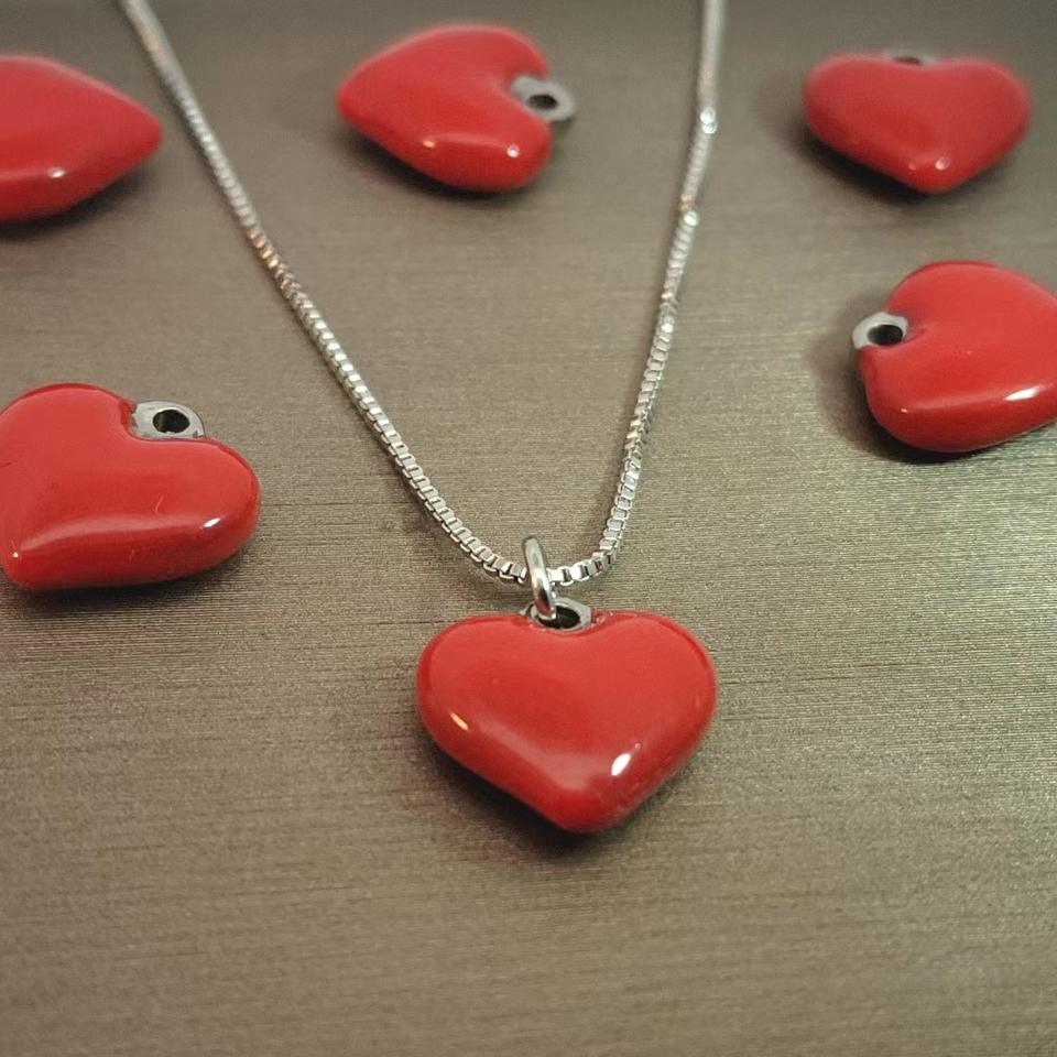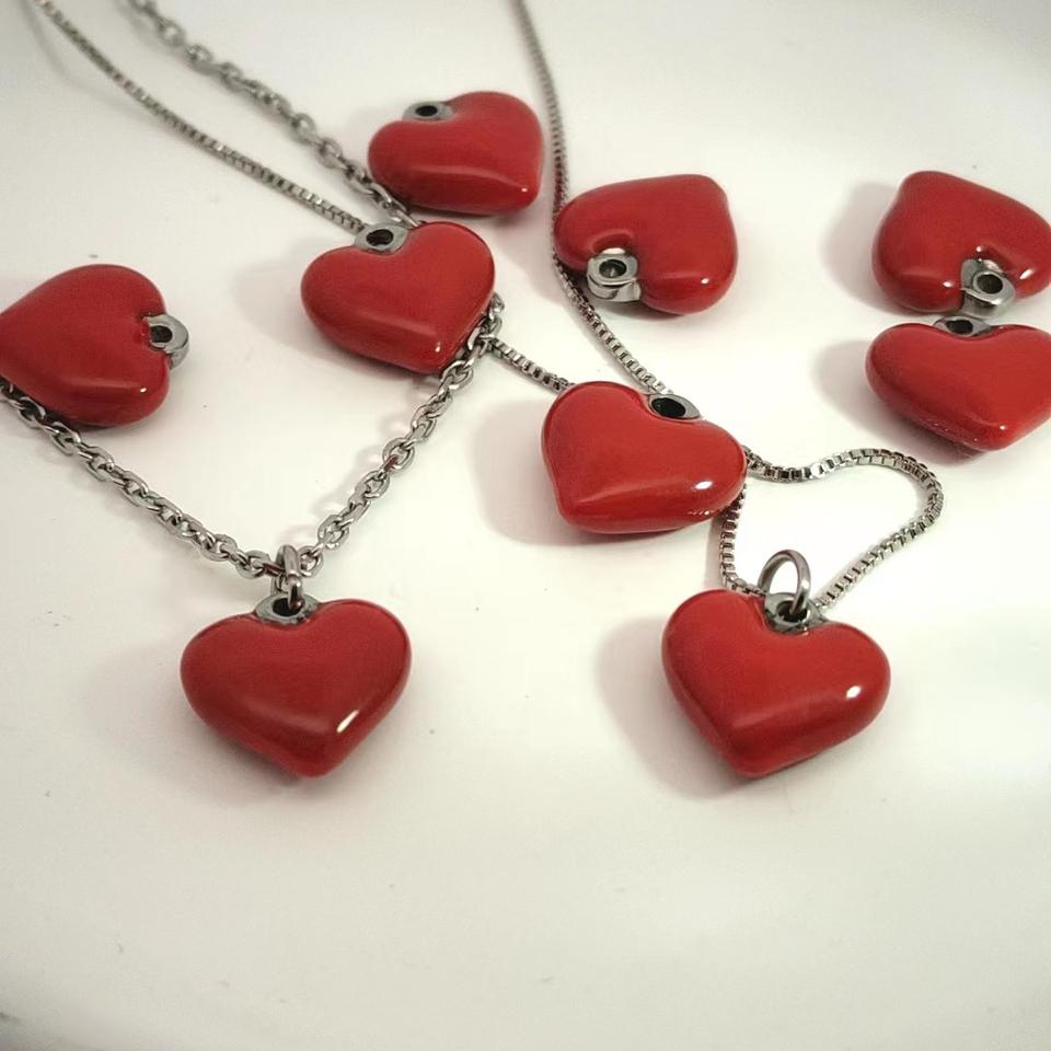 12มม. น้ำมันสแตนเลสทำด้วยมือรูปหัวใจสีแดงรูปหัวใจพีชอุปกรณ์ DIY สร้อยคอจี้เครื่องประดับจี้