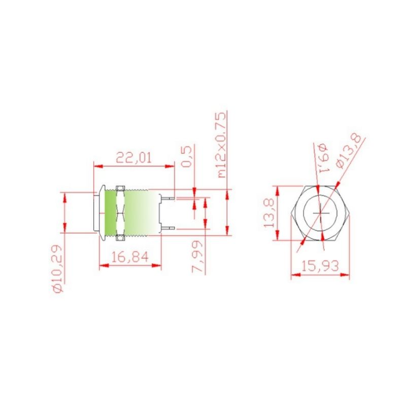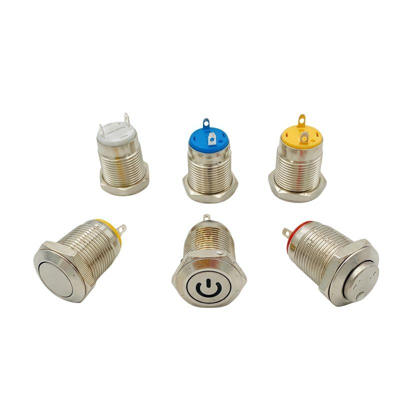 สวิตช์ปุ่มกดโลหะกันน้ำขนาด 12 มม. พร้อมไฟ LED ปุ่มเรืองแสงแบบรีเซ็ตตัวเองได้