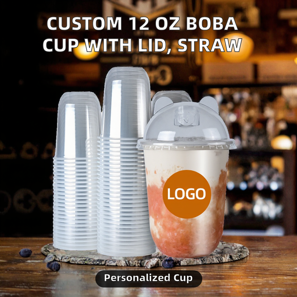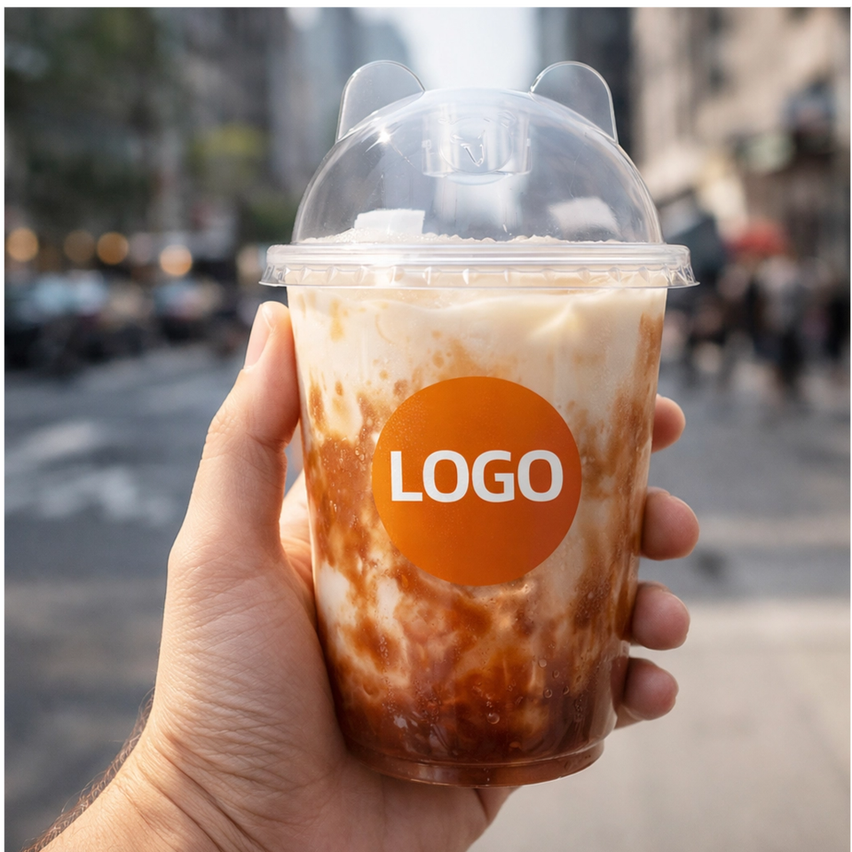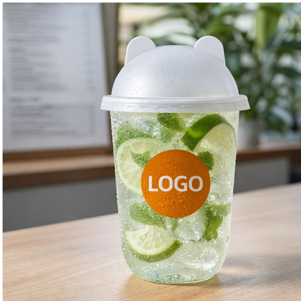 แก้วกาแฟพลาสติก PET ใสแบบใช้แล้วทิ้ง ขนาด 12 ออนซ์ 16 ออนซ์ 20 ออนซ์ พร้อมพิมพ์โลโก้ตามสั่ง เส้นผ่านศูนย์กลาง 90 มม. สำหรับเครื่องดื่มวอดก้าเย็น