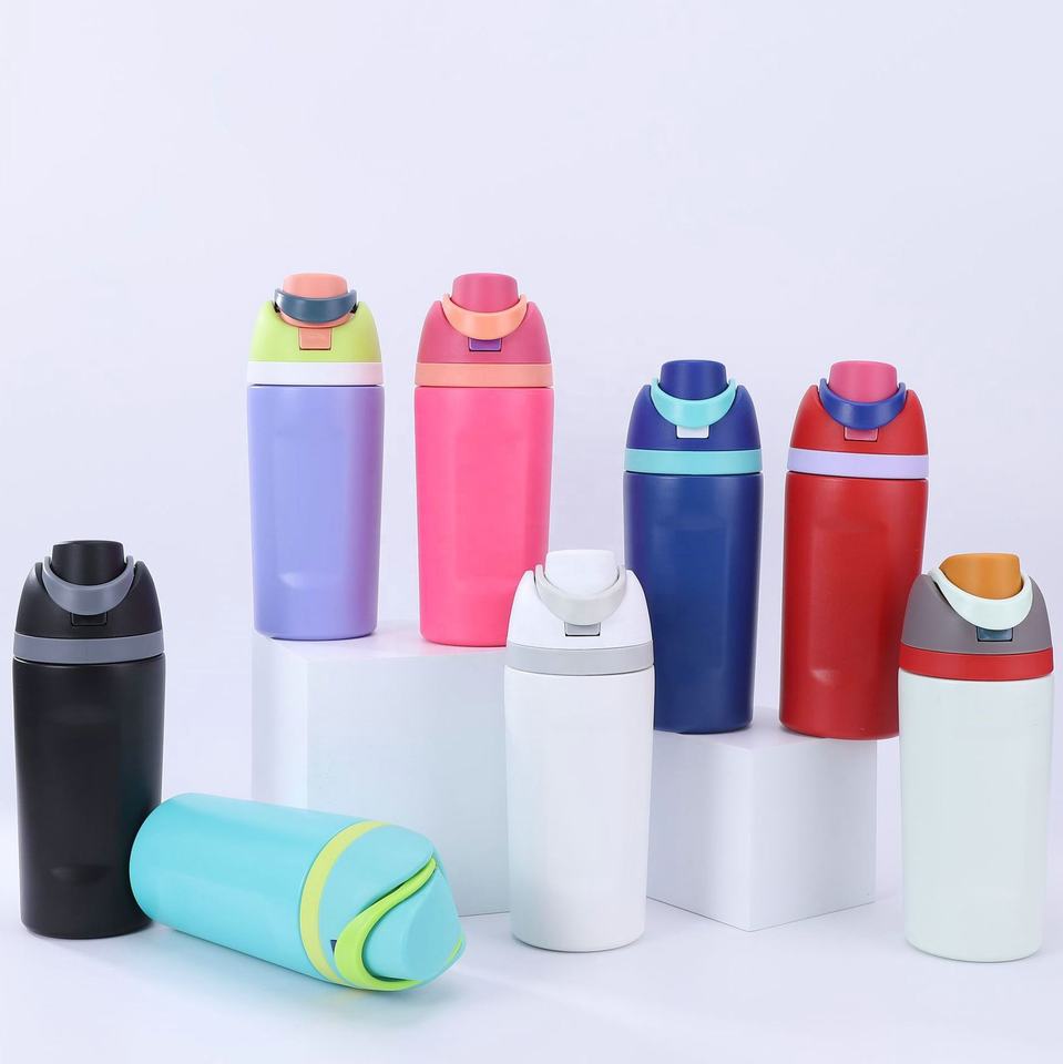 แก้วน้ำเด็กแบบมีฉนวนกันความร้อน ขนาด 12 ออนซ์ 16 ออนซ์ ปลอดสาร BPA ผลิตตามสั่ง ขวดน้ำสแตนเลสสำหรับโรงเรียน พร้อมฝาปิดและหลอด