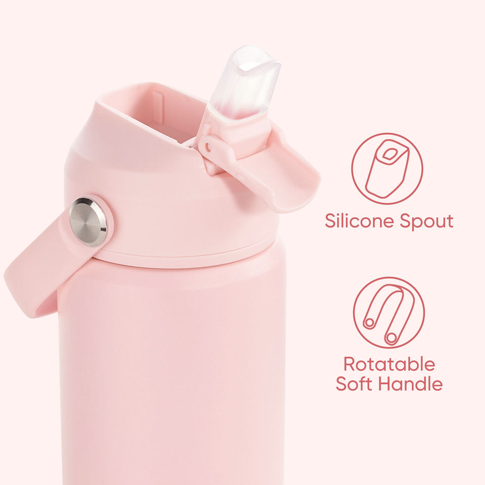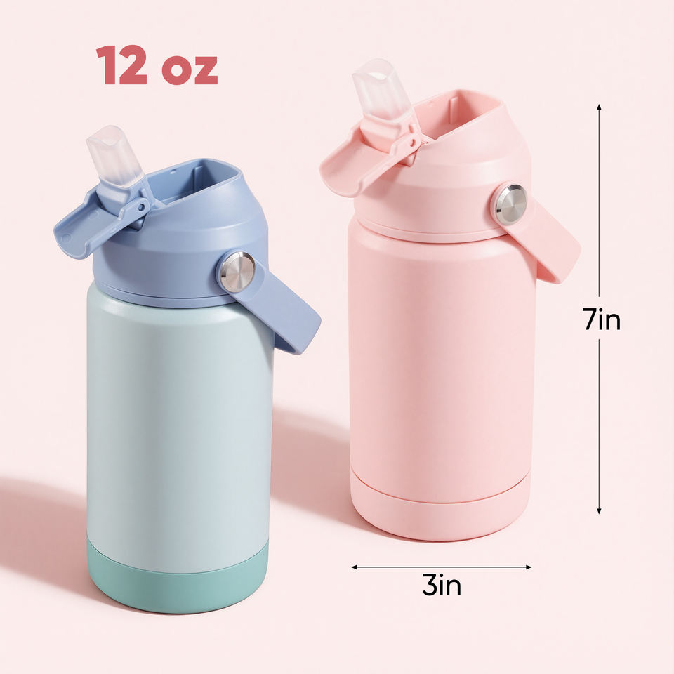 กระติกน้ำเด็กแบบเก็บอุณหภูมิ ขนาด 12 ออนซ์ ผลิตจากสแตนเลส 304 เก็บความร้อนได้นาน 24 ชั่วโมง ป้องกันการรั่วซึม ปราศจากสาร BPA เหมาะสำหรับเด็กวัยหัดเดิน ใช้สำหรับกลับไปโรงเรียนและการเดินทาง