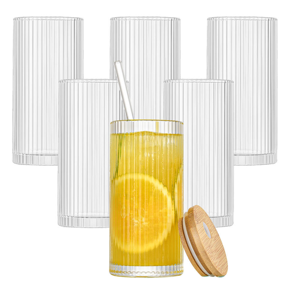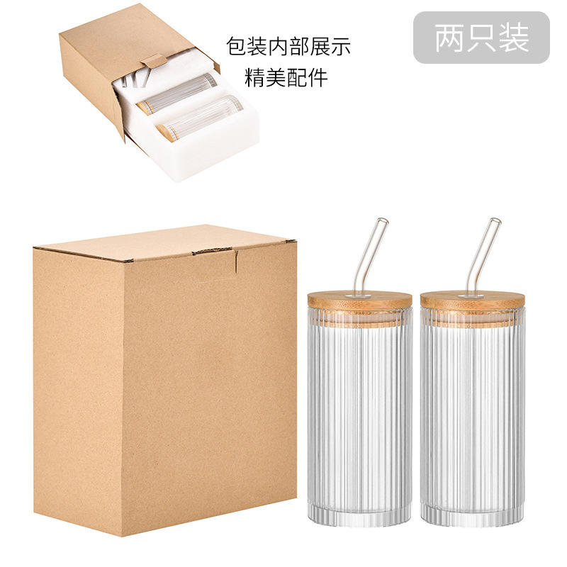 แก้วเมล็ดแนวตั้ง 12 ออนซ์สําหรับนม กาแฟ น้ําผลไม้ โคล่า เครื่องดื่ม ค็อกเทล วิสกี้ ไวน์ แก้วฟาง พร้อมไม้ไผ่ และฝาไม้ และโฟม