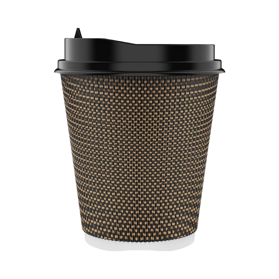 ถ้วยกระดาษลูกฟูกเกรดอาหาร12ออนซ์พร้อมฝาปิดเป็นมิตรต่อสิ่งแวดล้อมสำหรับกาแฟและน้ำอัดลม