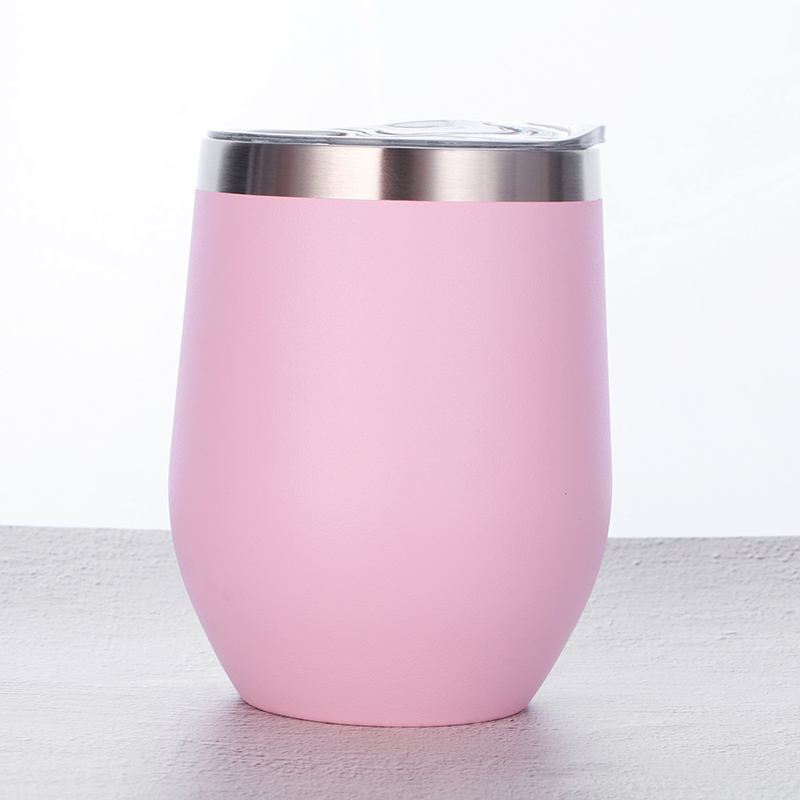 แก้วกาแฟสำหรับเดินทางทรงไข่ขนาด12ออนซ์แก้วน้ำเก็บอุณหภูมิไวน์แดงสแตนเลสผนังสองชั้นพร้อมฝาสินค้าพรีเมียม