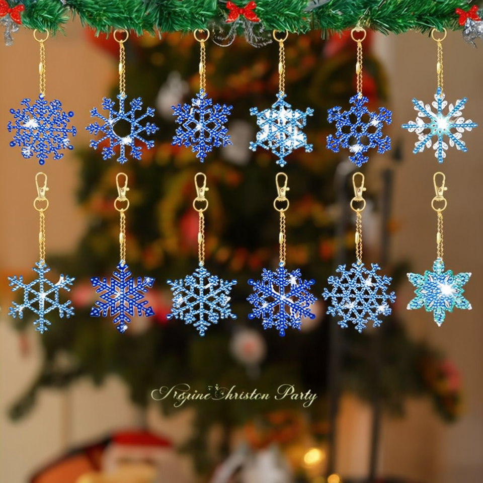 จี้รูปเกล็ดหิมะสองด้านประดับเพชรอะคริลิค 12 ชิ้น สำหรับตกแต่งต้นคริสต์มาส พวงกุญแจ ชุดอุปกรณ์ศิลปะ DIY