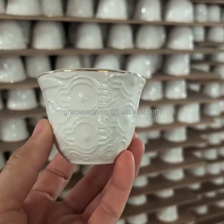 ชุดถ้วยกาแฟอาหรับตุรกีลายนูนสีทองสีขาวหรูหราทันสมัย12ชิ้น