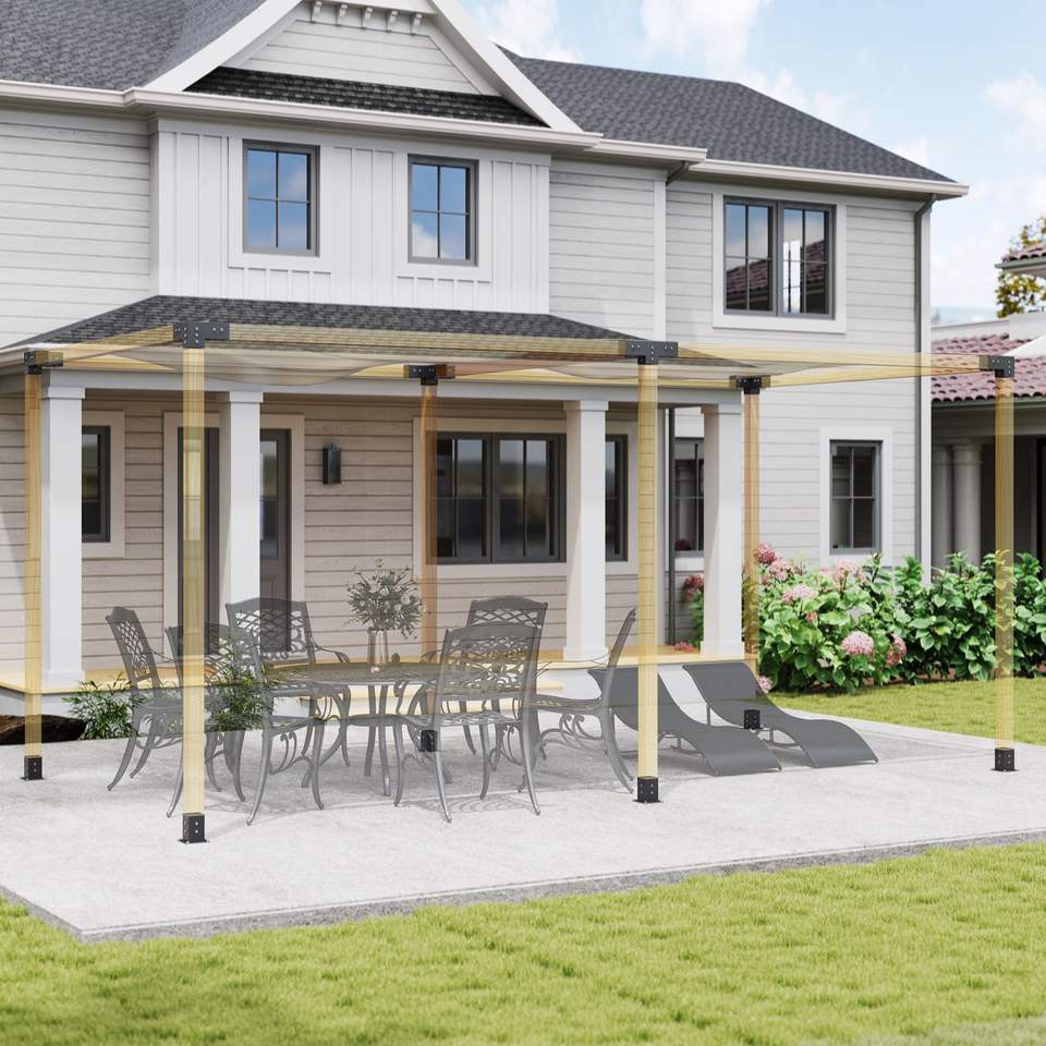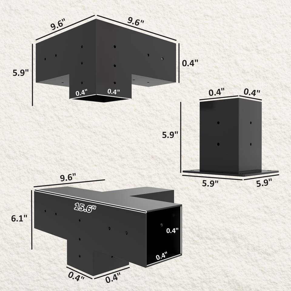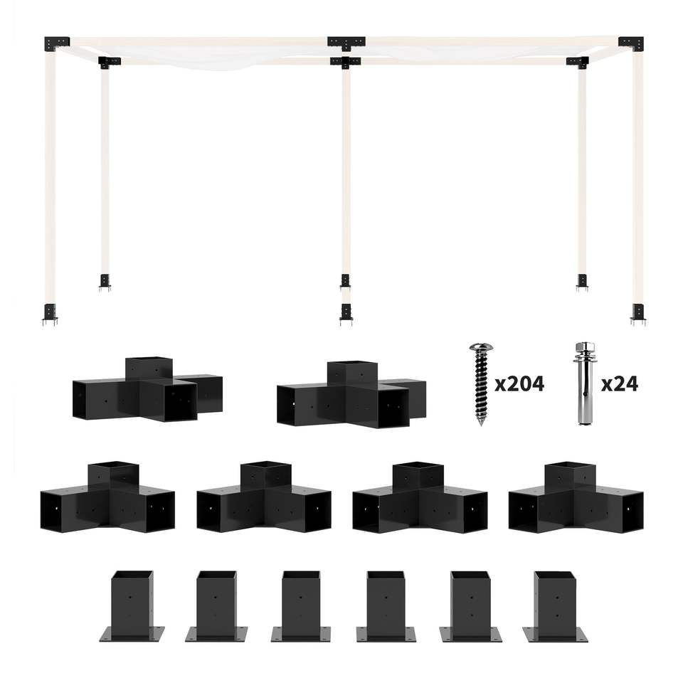 ชุดอุปกรณ์เพอร์โกลา 12 ชิ้น พร้อมขายึดมุม 3 ทาง และ 4 ทาง สำหรับไม้ขนาด 4"x4" (จริง 3.6"x3.6") สำหรับเพอร์โกลา ศาลา และศาลาทรงหกเหลี่ยม