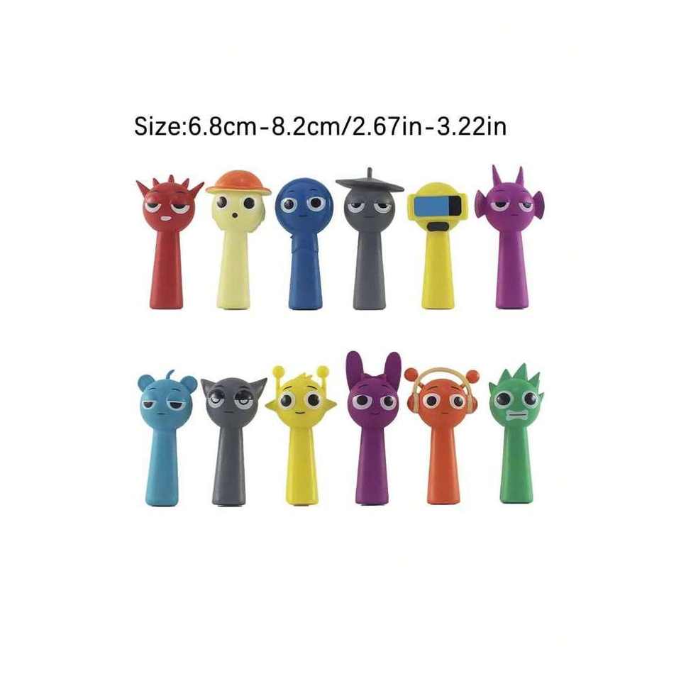 12pcs/set 6.8cm-8.2cm PVC Sprunki Incredibox Action Figures Model Toys ABS Material Cartoon Home Desktop GiftsBook