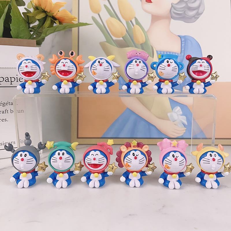 12pcs/set Cartoon Toy Doll Blue Fatty Nobi Nobita Anime Figures Constellations Doraemon Figure for Gift