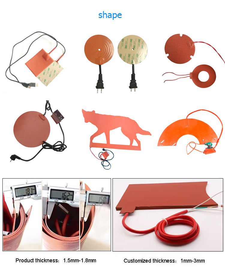ชื่อสินค้า:แผ่นทำความร้อนซิลิโคนยางไฟฟ้าแบบยืดหยุ่น 12v 110v 120v ขนาด 150x150 มม.