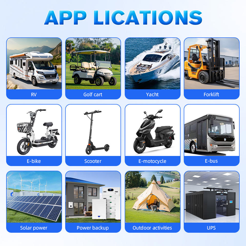 เรือ, เครื่องใช้ไฟฟ้า, โดรน, ไฟฟ้าจักรยาน/สกูตเตอร์, รถยกไฟฟ้า, ไฟฟ้าระบบ, ยานพาหนะไฟฟ้า, ไฟฟ้ารถเข็น, รถกอล์ฟ, เครื่องใช้ในบ้าน, เครื่องมือไฟฟ้า, เครื่องดูดฝุ่นหุ่นยนต์, ระบบจัดเก็บพลังงานแสงอาทิตย์, เรือดำน้ำ, ของเล่น, Uninterruptible Power Suppliesใบสมัคร