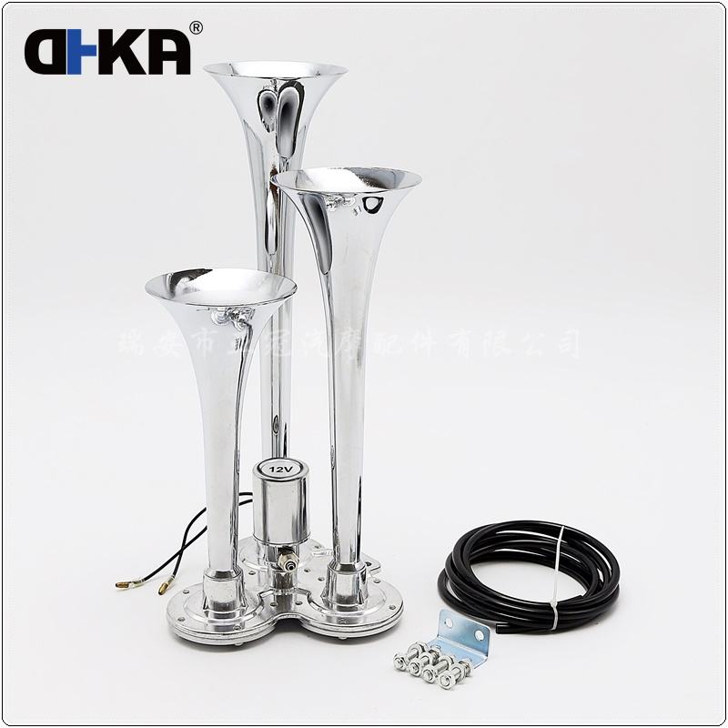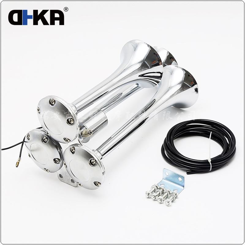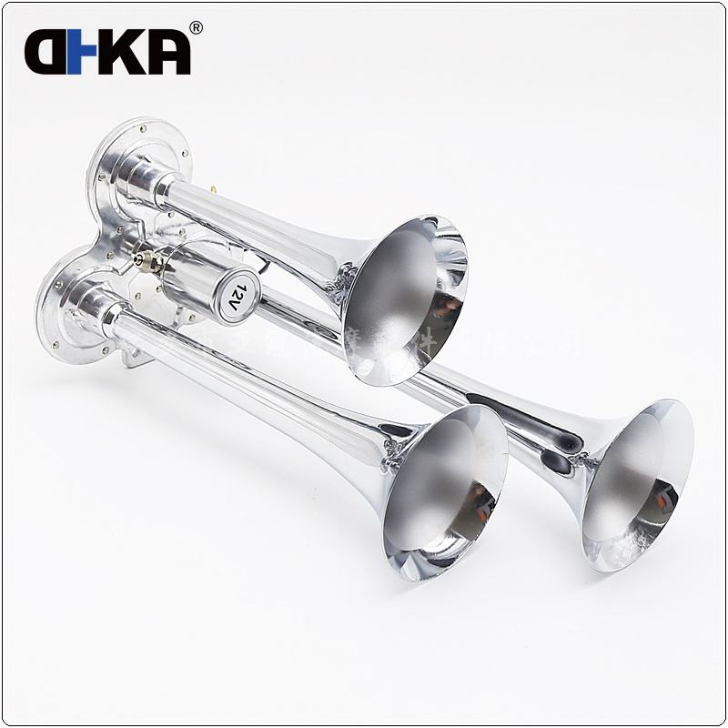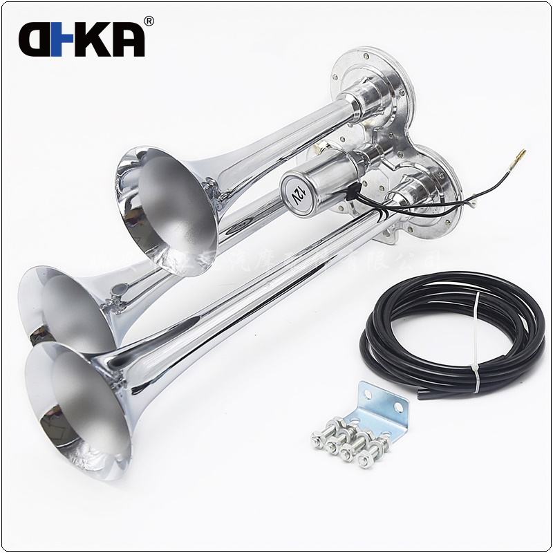 แตรเป่าลมแบบสามท่อ12V/24V 3ท่อแตรควบคุมด้วยเหล็กโครเมี่ยมสำหรับรถยนต์ AS033LAC