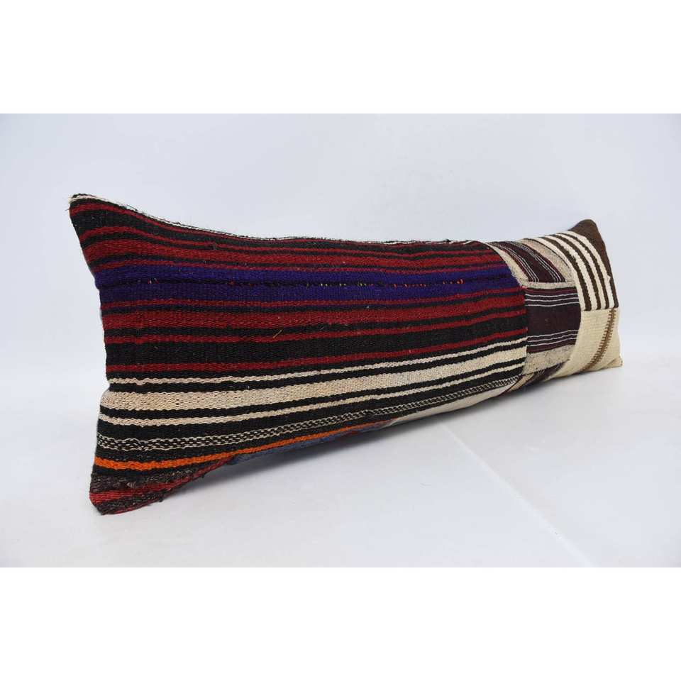 12x36 Inches Multicolor Kilim Wool Rug with Woven Vintage Pattern Pillow