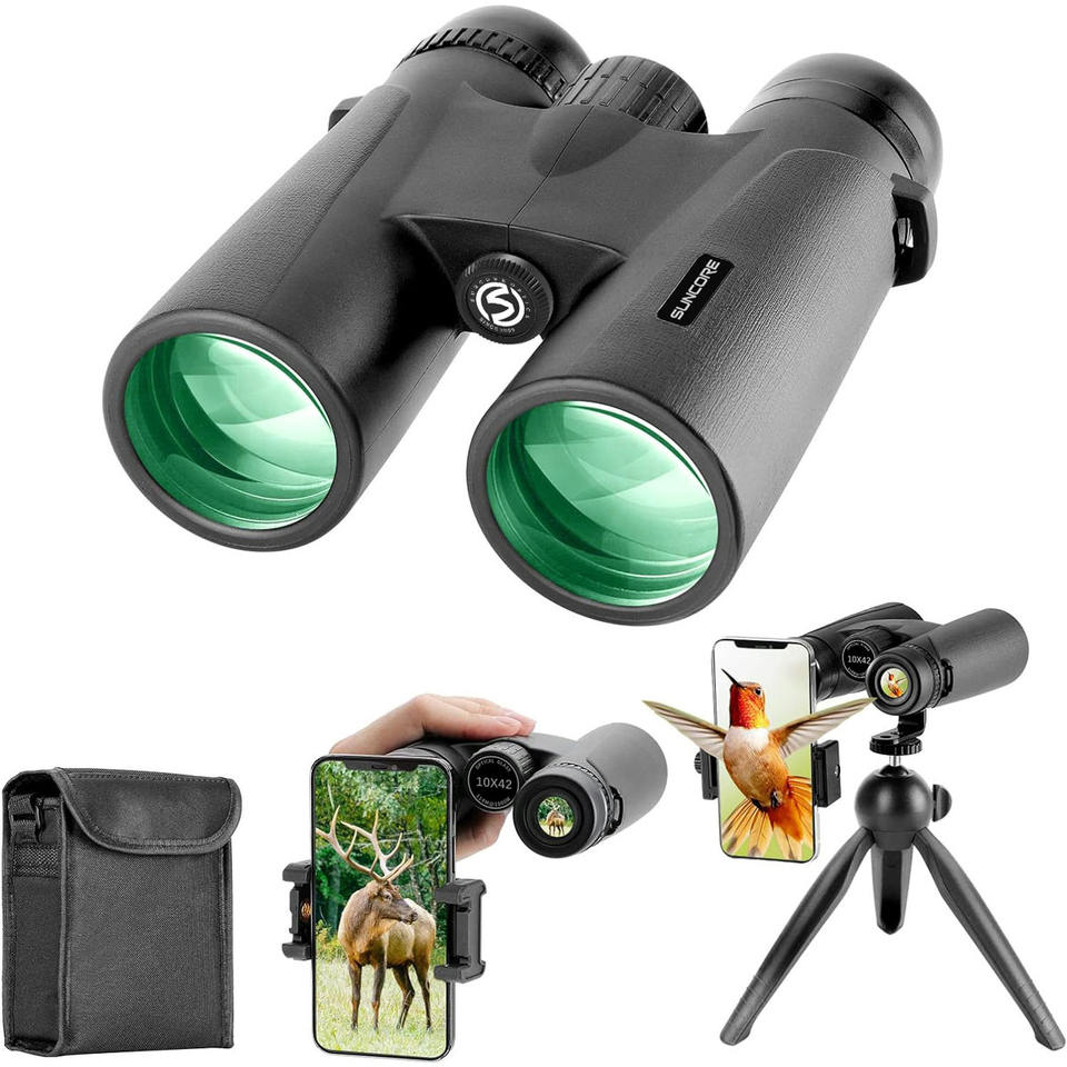 กล้องส่องทางไกล HD 12x42สำหรับผู้ใหญ่อะแดปเตอร์โทรศัพท์พลังสูงรวมขาตั้งกล้องขนาดใหญ่มองเห็นแสงน้อยชัดเจนสำหรับการดูนก