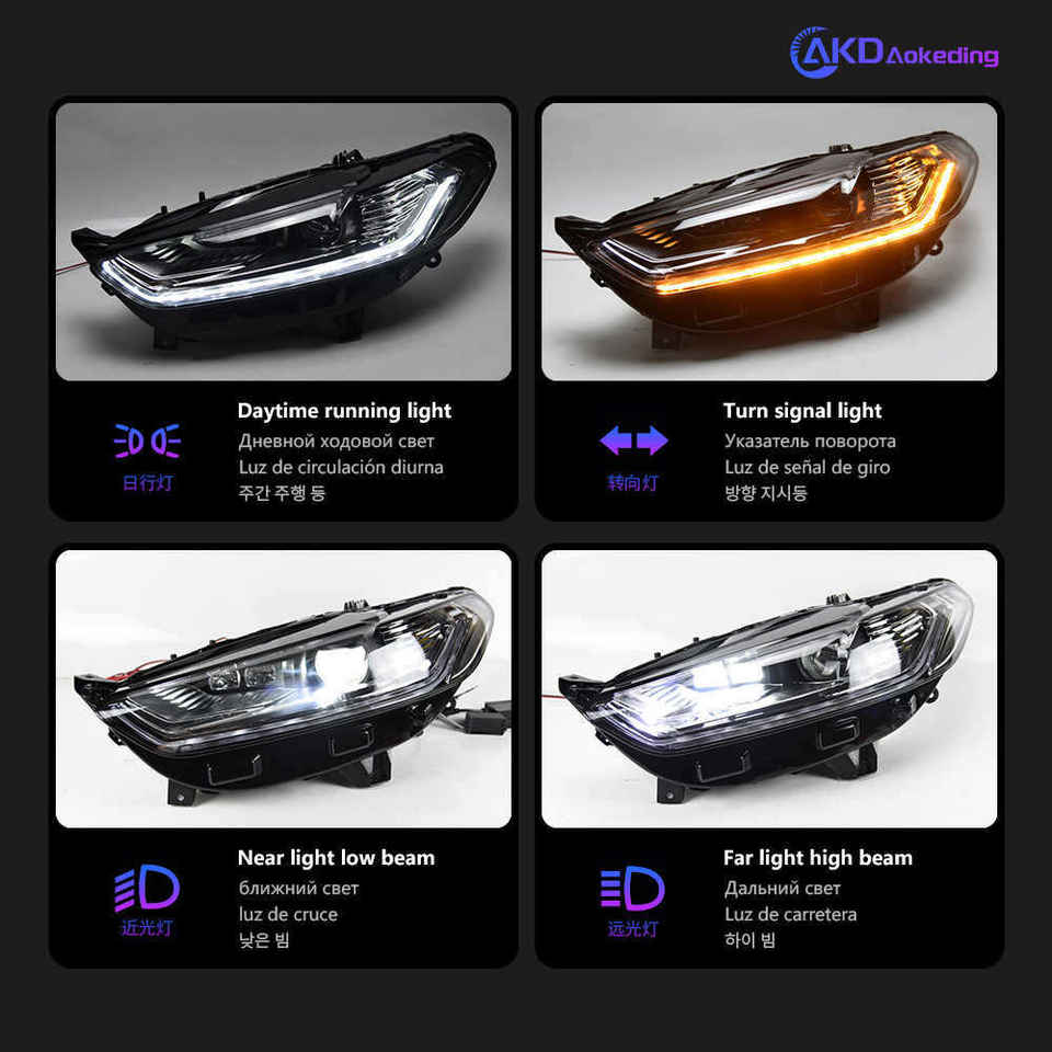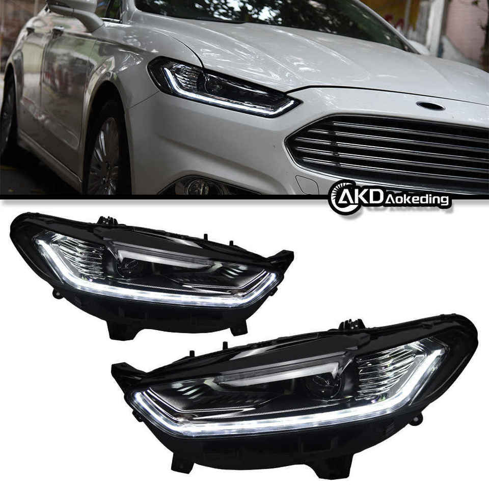 Mondeo ใหม่13-16สำหรับ Ford Mondeo ไฟหน้า LED แบบคู่ไฟแอลอีดีเลนส์กันนํ้าหน้าสีเหลืองอำพันในเวลากลางวัน