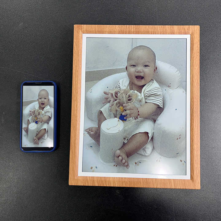 กรอบรูปดิจิตอลขนาด 13.3 นิ้ว รองรับ WiFi ความละเอียดสูง 1600*1200 HD สำหรับร้านค้าปลีก ห้างสรรพสินค้า กรอบรูปไม้วอลนัท
