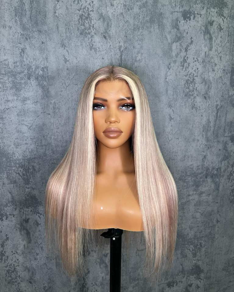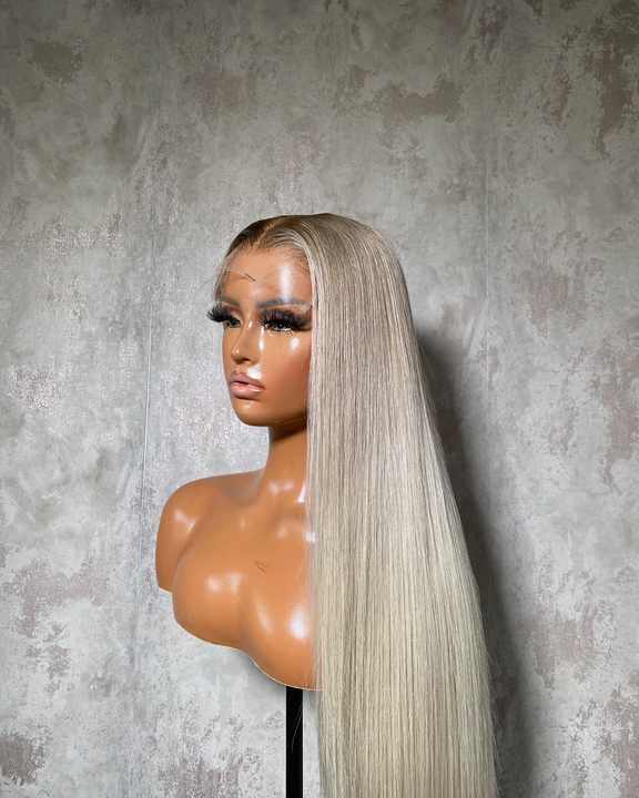 วิกผมแท้สีเทาไฮไลท์ไล่เฉดแบบออมเบร ความหนาแน่นสูง 13*4 แบบโปร่งใส ทรงผมตรงยาว หรูหรา พร้อมผมเบบี้แฮร์ สำหรับผู้หญิง