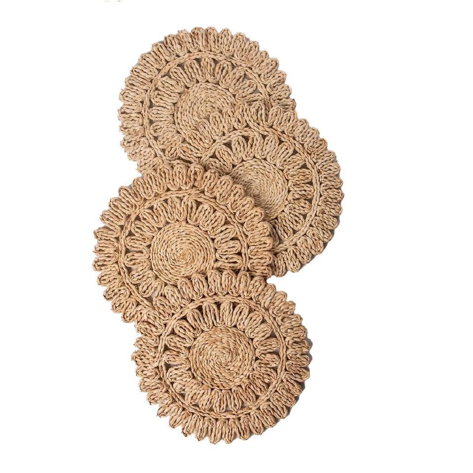 ชุดเสื่อหวายทรงกลมหนา13.8นิ้วที่ชาร์จแผ่นสปริง4ชิ้นสำหรับงานแต่งงานงานคริสต์มาส