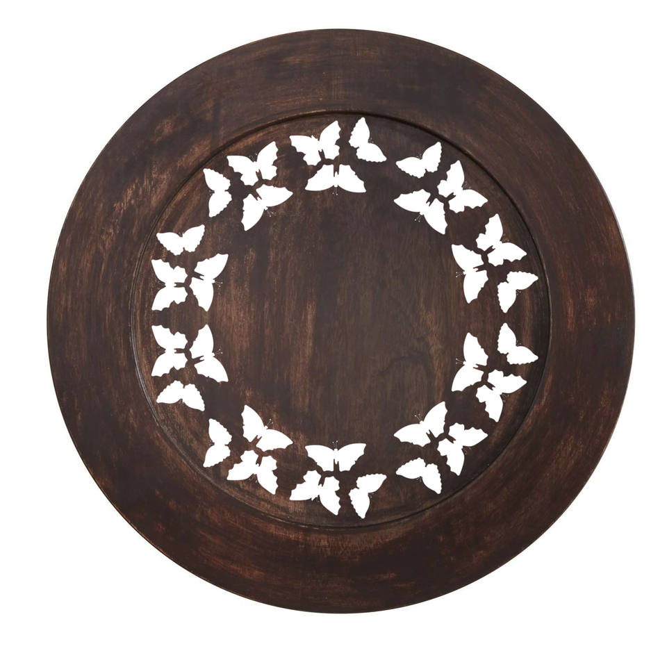 จานรองไม้สลักลายขนาด 13 นิ้ว สไตล์เรียบง่ายสำหรับตกแต่งโต๊ะในวันหยุดและงานแต่งงาน ขายส่งจานตกแต่งสำหรับเสิร์ฟอาหาร