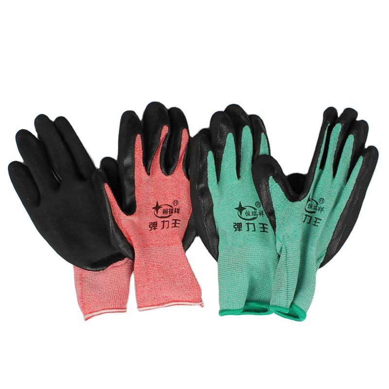 ถุงมือยางลาเท็กซ์โฟมถักขนาด13นิ้วเคลือบปลายนิ้วเพื่อเสริมแรงในการทำงาน