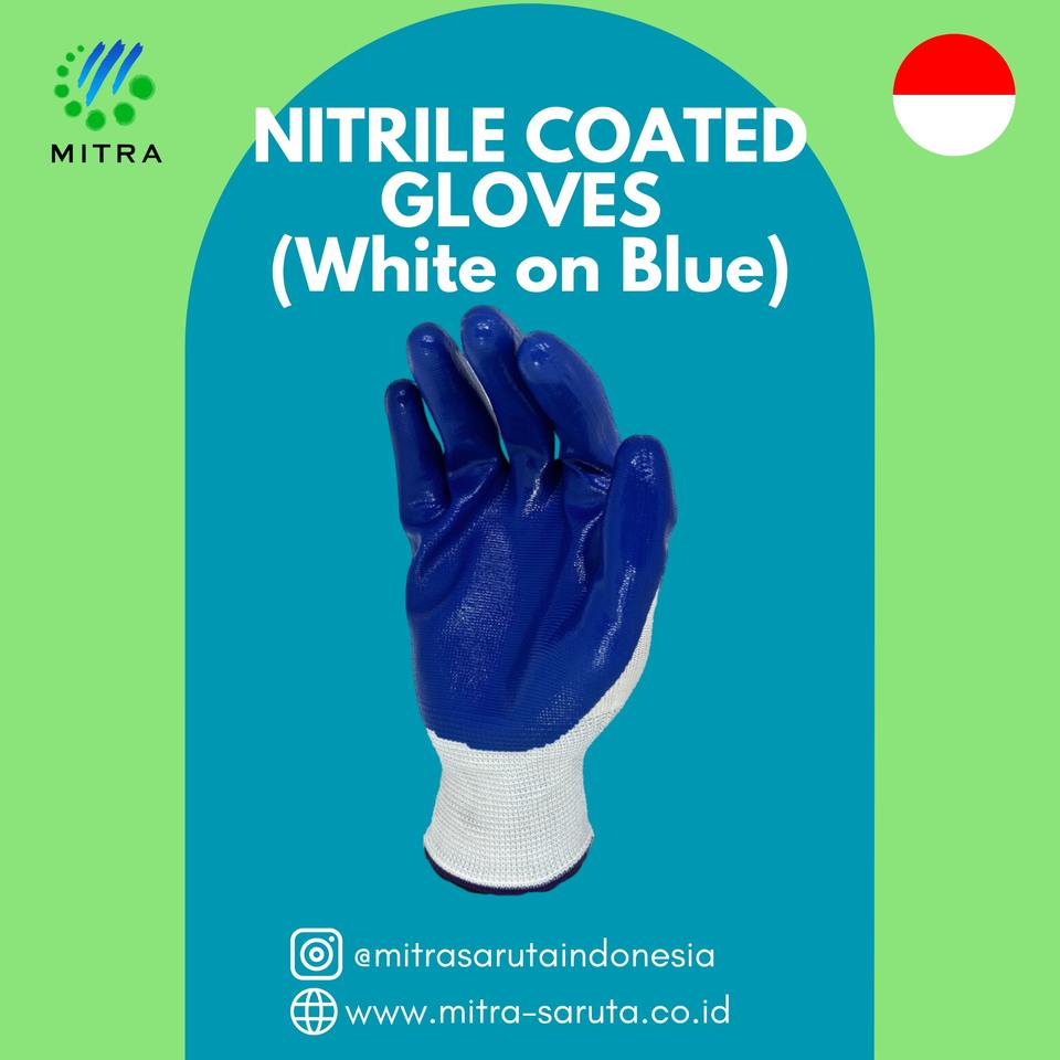 ถุงมือไนไตรล์ป้องกันงานยานยนต์โพลีเอสเตอร์กันลื่นขนาด13เมตรถุงมือนิรภัย NBR สีน้ำเงิน