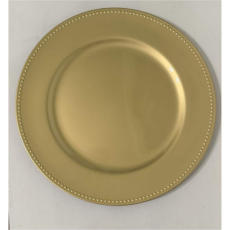 จานรองตกแต่งขอบทองขนาด 13 นิ้ว สำหรับงานแต่งงานและงานอีเว้นท์ ทนความร้อน ใช้สำหรับเสิร์ฟ