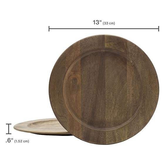 จานรองไม้มะม่วงธรรมชาติขนาด 13 นิ้ว จานไม้กลมสำหรับงานแต่งงาน ตกแต่งงานอีเว้นท์ และภาชนะบนโต๊ะอาหารสำหรับโรงแรมและร้านอาหาร