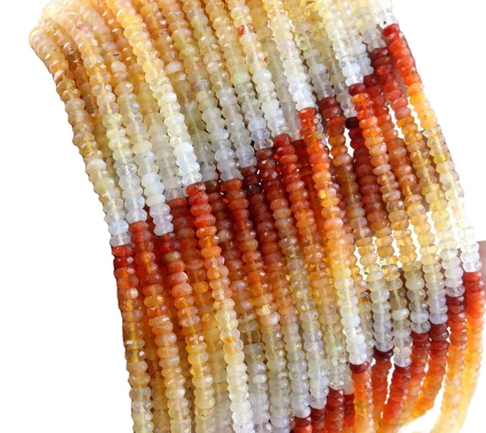 13" Long 1 Strand Natural Mexican Fire Opal Faceted Rondelle Beads for Making Fire Jewelry Manufacturer Genuine High Quality