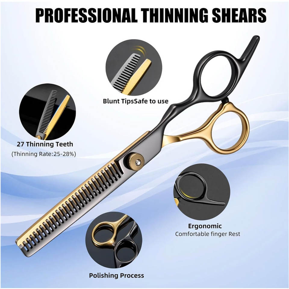 13 PCS MAQNSCO Professional Hair Cutting Scissors Kit 6.5 Inches Stainless Steel Blunt-Sharp Tip 23 Teeth Handles
