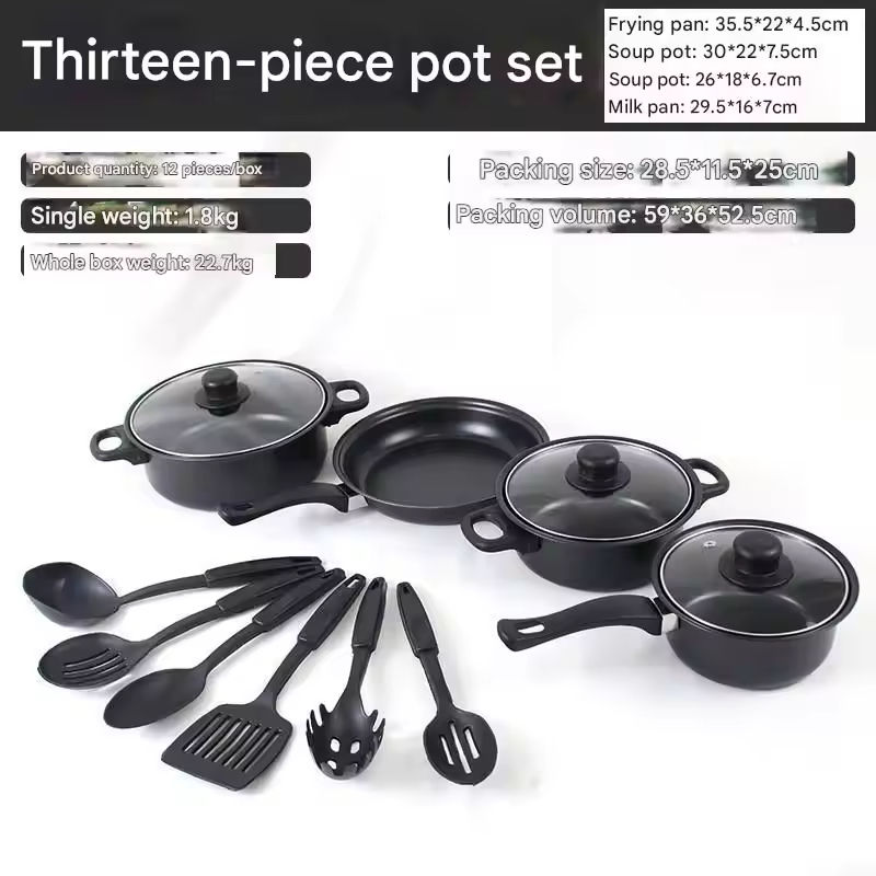ชุดเครื่องครัวครบชุด 13 ชิ้น กระทะเคลือบหินแกรนิตกันติด หม้อซุป หม้อนม ตะหลิว ชุดอุปกรณ์ครัวที่จำเป็น