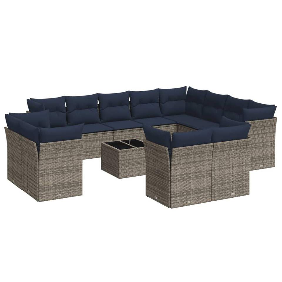 ชุดโซฟาลานบ้านหวายโพลีสีเทา 13 ชิ้นพร้อมชุดเบาะรองนั่งในสวน