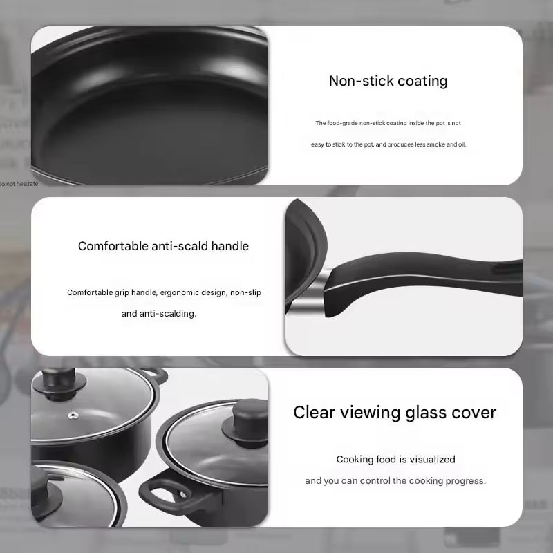 ชุดเครื่องครัว 13 ชิ้น กระทะหินแกรนิตเคลือบกันติด หม้อซุป หม้อนม ตะหลิว ชุดเครื่องครัวทนทาน