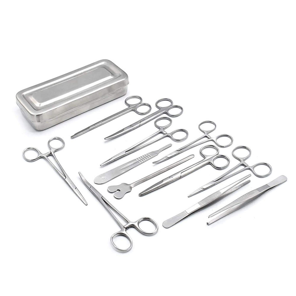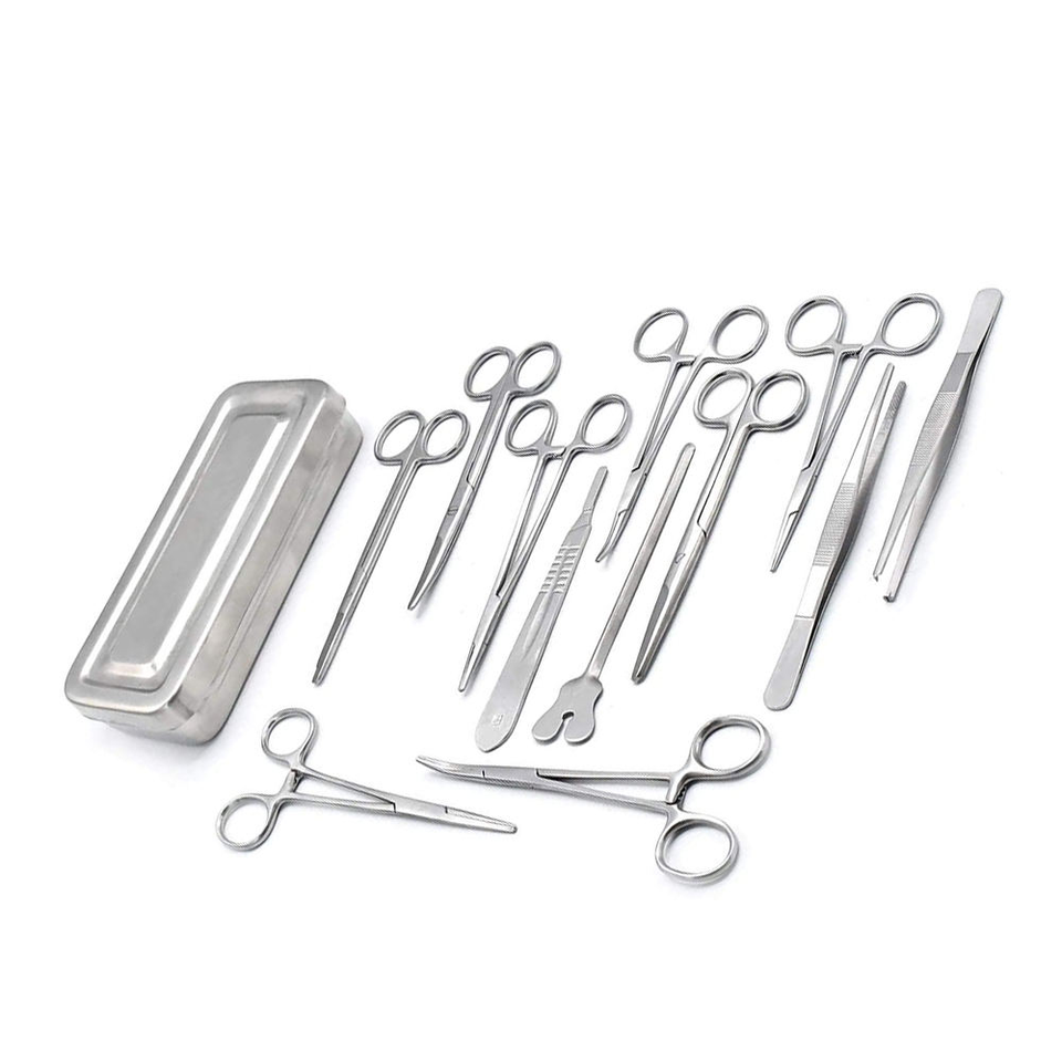 ชุดเครื่องมือผ่าตัดสแตนเลส 13 ชิ้น พร้อมคีม กรรไกร ที่จับเข็ม ในกล่องทนทานสำหรับม้า สีตามสั่ง
