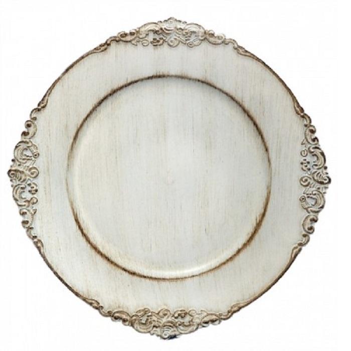 Product Name:Round Royal Antiqued White Charger Plate 13"