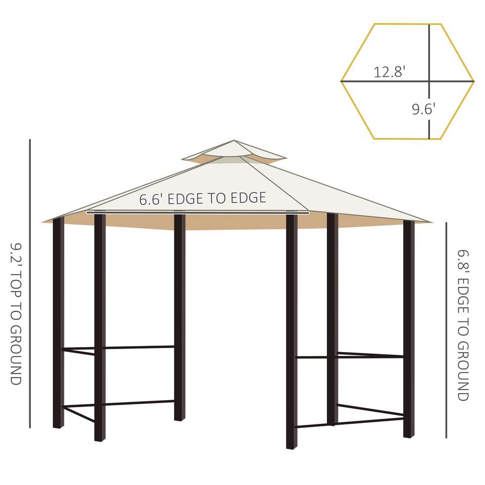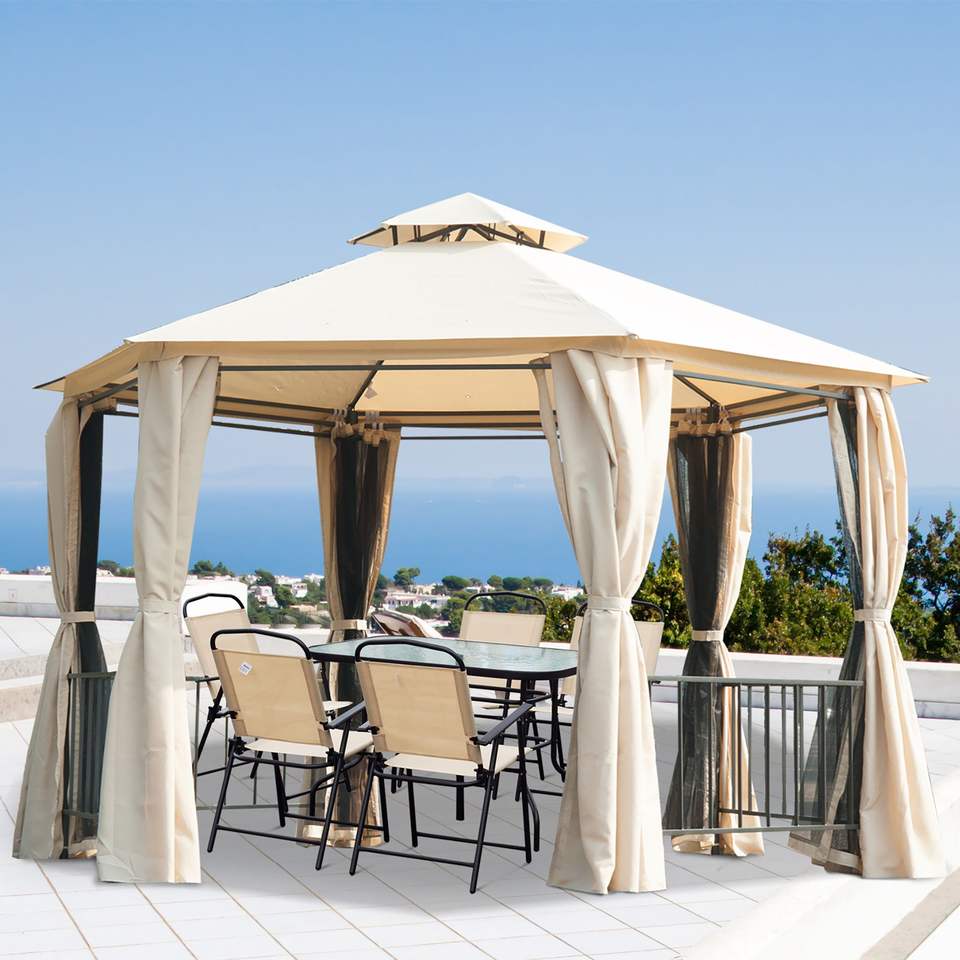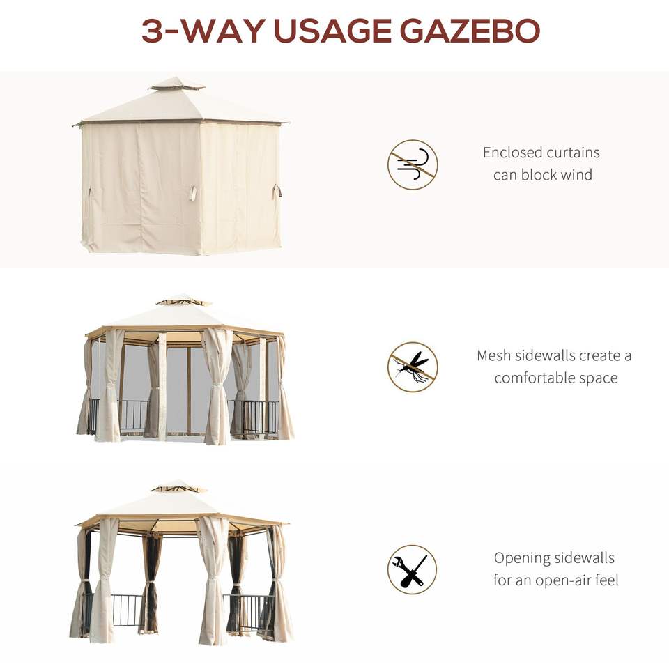 13' X 13' Beige Hexagon Outdoor Party Tent Pergola Gazebo & Pavilion with Mesh Nettings & Curtains