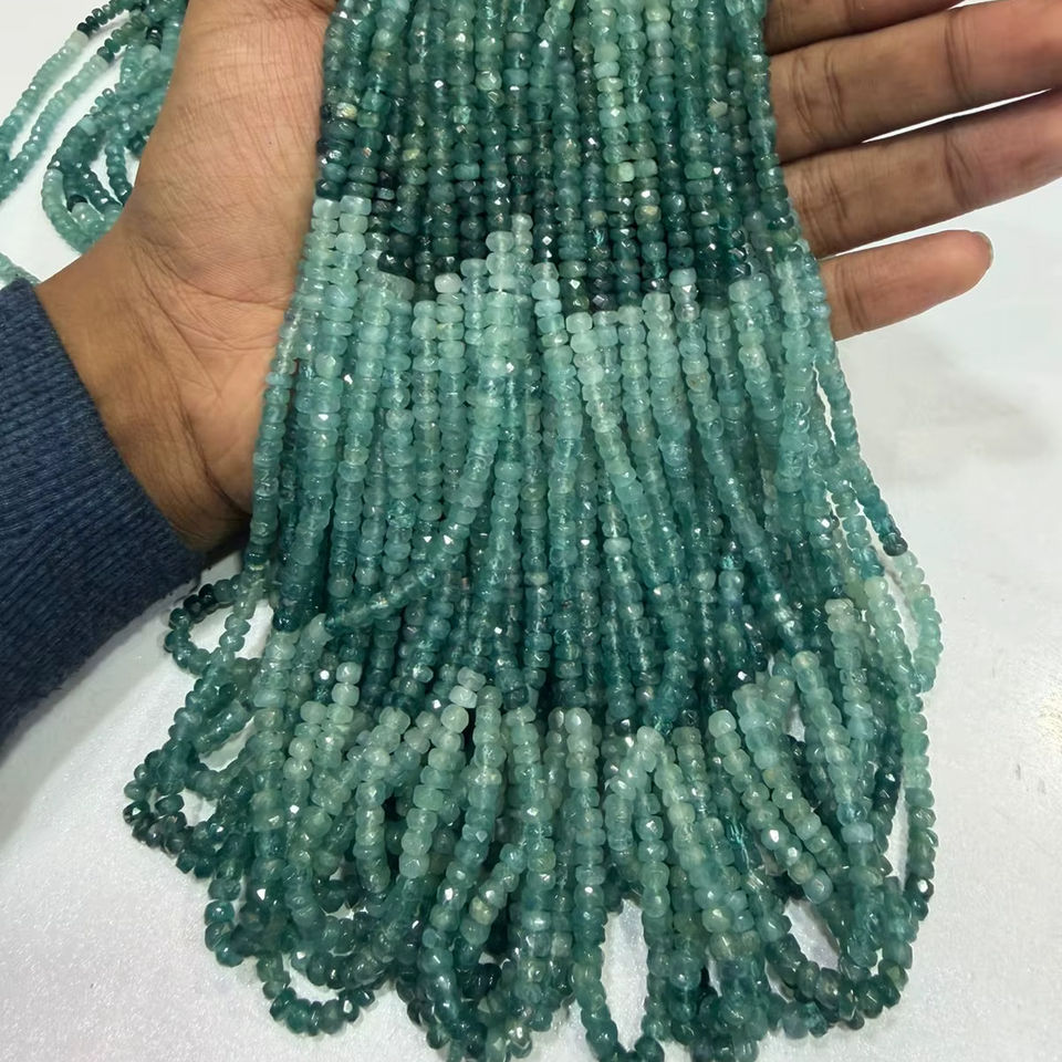 สร้อยข้อมือแกรนดิเดียร์ไรต์จากอัญมณีธรรมชาติขนาด 13 นิ้ว ลูกปัดทรงรอนเดลเหลี่ยมเพชรพลอยขนาด 4-5 มม. ของขวัญวันมิตรภาพ ความยาว 16 นิ้ว