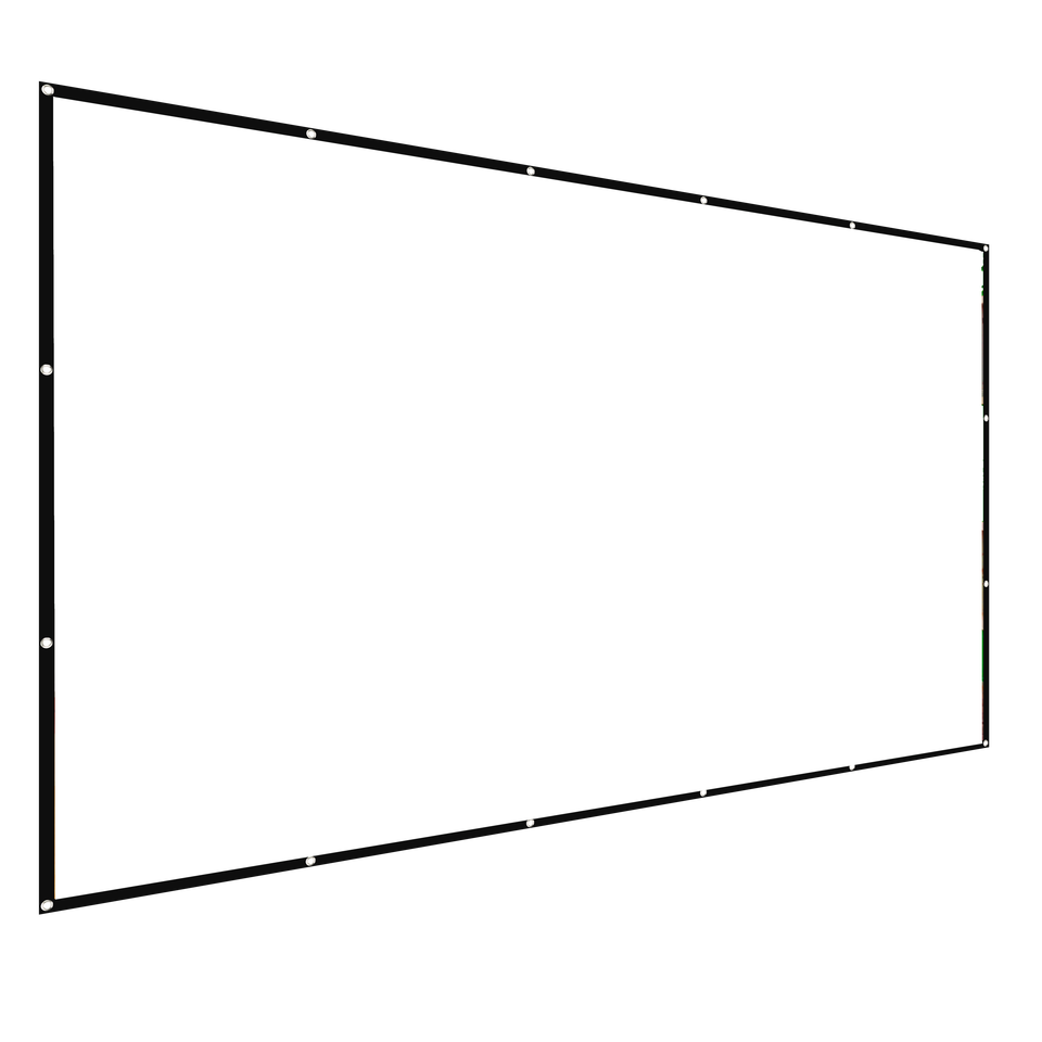 จอโปรเจคเตอร์แบบพกพาขนาด 130 นิ้ว ผ้าโพลีเอสเตอร์ 16:9 แบบไร้ขอบ จอฉายวิดีโอแบบพับได้ติดผนัง