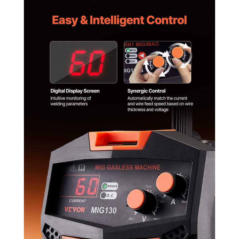130Amp Synergic MIG Welder Machine Portable 110V IGBT Inverter Gasless Flux Core Welder High Performance Machine for Welding