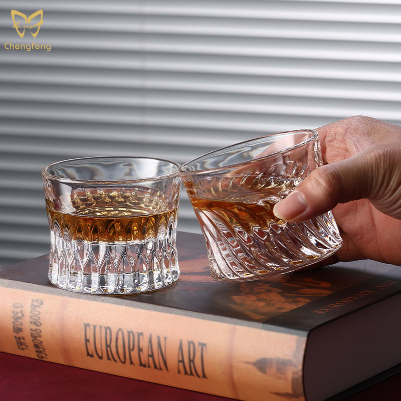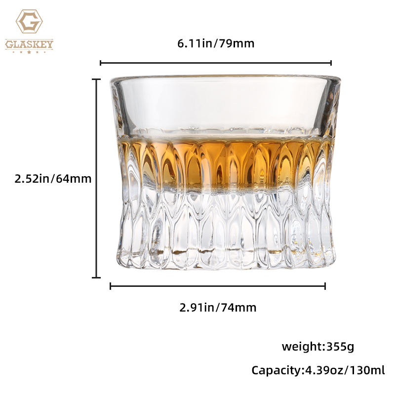 แก้ววิสกี้แกะสลักคริสตัลก้นหนา130มล. แก้วไร้สารตะกั่ว
