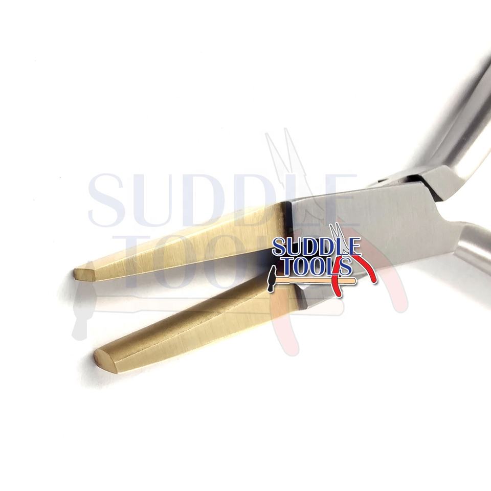คีมปากแบนแบบโค้งครึ่งหนึ่ง หัวทองเหลืองแท้ ขนาด 130 มม. อุปกรณ์ทำเครื่องประดับเหล็ก สำหรับทำนาฬิกา เจาะร่างกาย เครื่องมือช่างแว่นตา รุ่น D