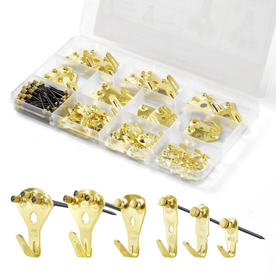 130pcs Metal Photo Hanging Kit Picture Frame Hangers with Nails 10lbs to 100lbs Wall Hangings