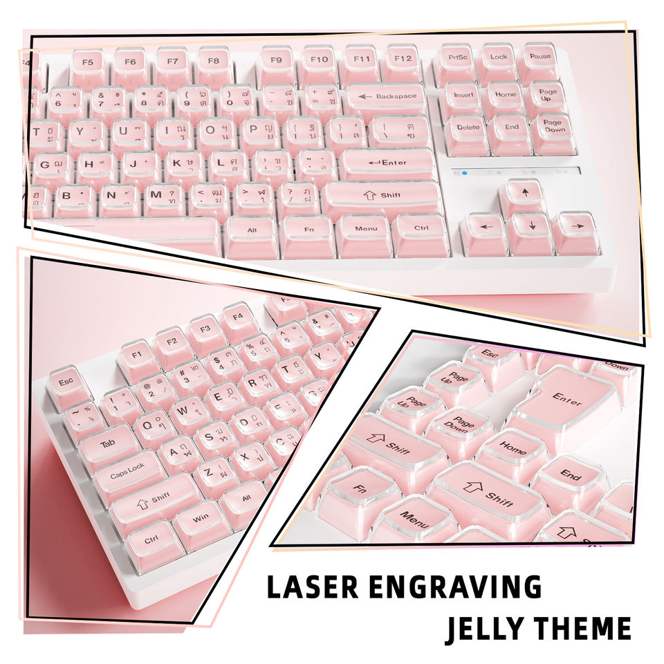 คีย์แคปแบบเจลลี่ 132 ปุ่ม, แกะสลักด้านข้างและด้วยเลเซอร์, ภาษาอังกฤษและภาษาไทยสำหรับคีย์บอร์ดเกมมิ่งแบบกลไก