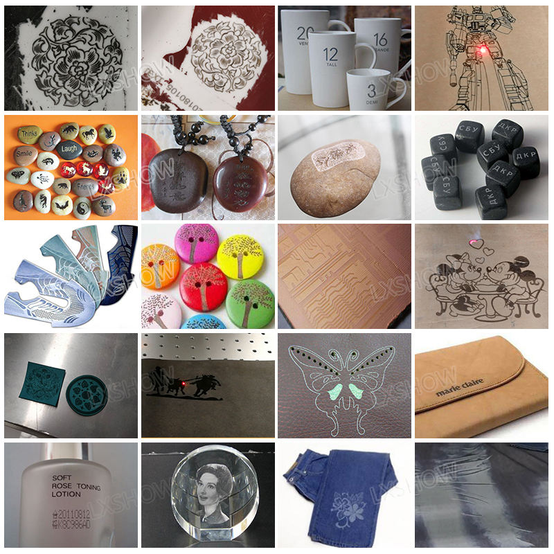 Acrylic, Crytal, Glass, Leather, MDF, Paper, Plastic, Plexiglax, Plywood, Rubber, Stone, Wood, laser engraving machine